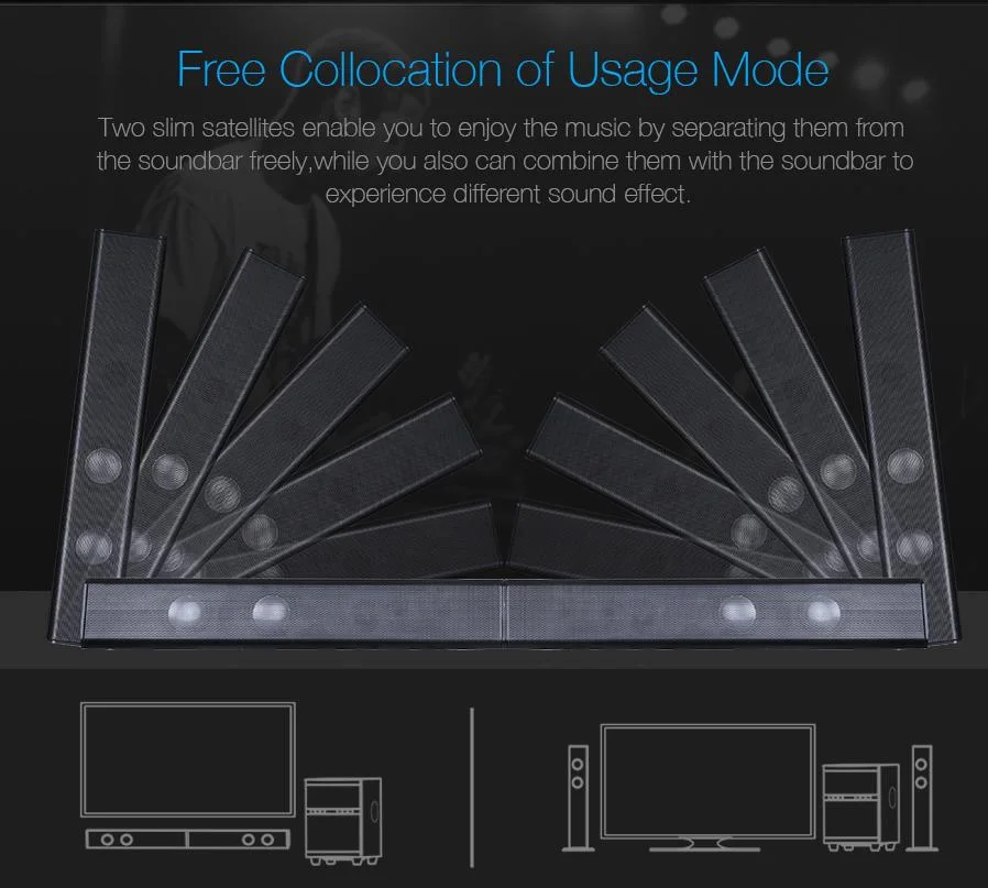 • Detachable Design: The soundbar can be split into two satellite speakers for a customizable audio setup.