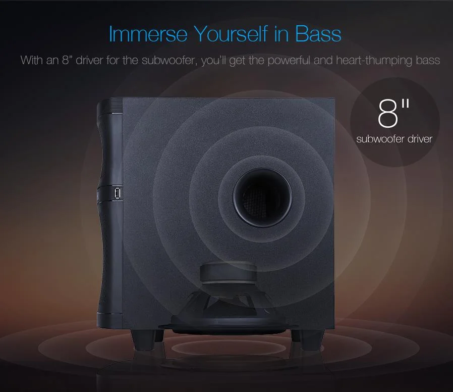 • Dedicated Subwoofer: Enhances low-frequency performance, providing deep and punchy bass.