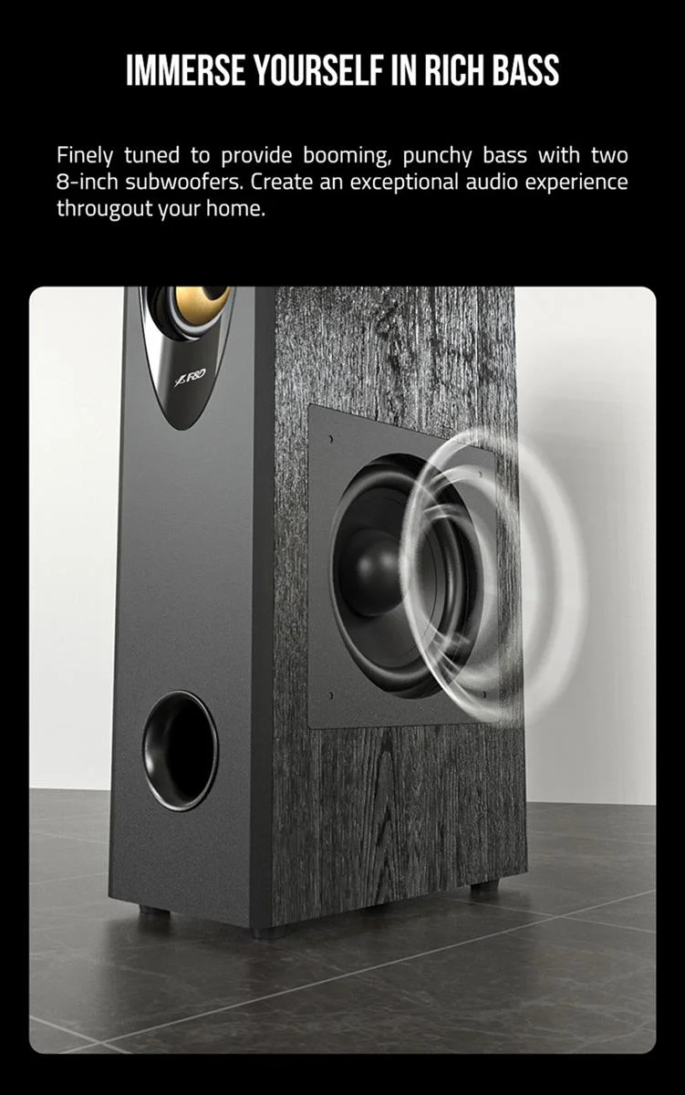 The F&D T60X Pro Bluetooth Tower Speaker is an excellent choice for home audio enthusiasts, offering premium sound quality, versatile connectivity, and a stylish design—ideal for movies, music, and gaming.