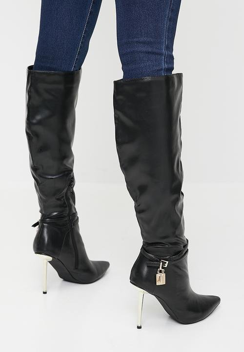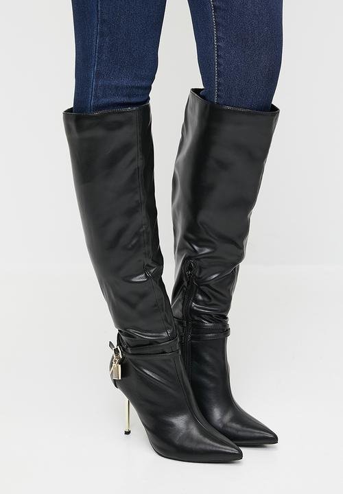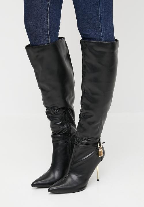 These Bash Black knee-length Ladies ankle boots are suitable for various occasions, from casual outings to formal events, and can be paired with dresses, skirts, or jeans for a chic and polished look.