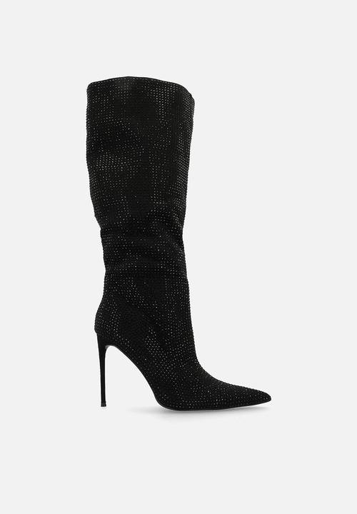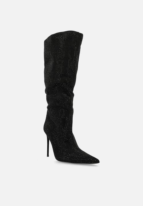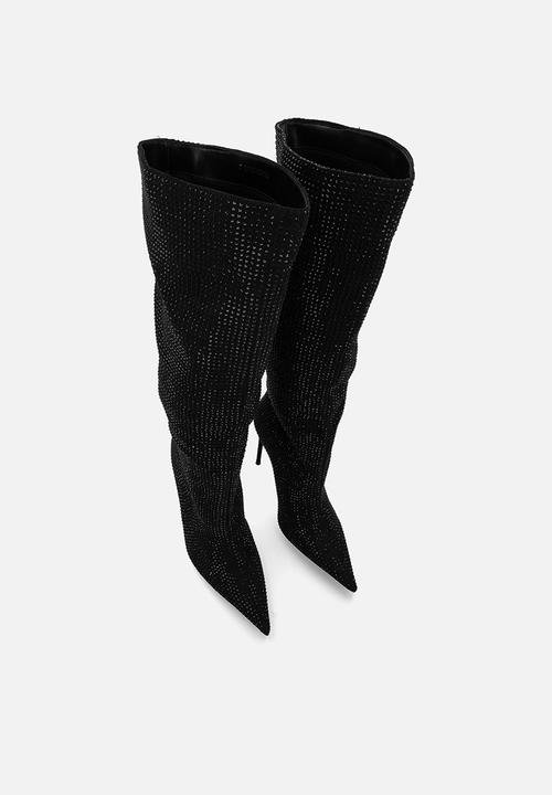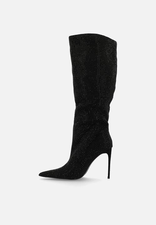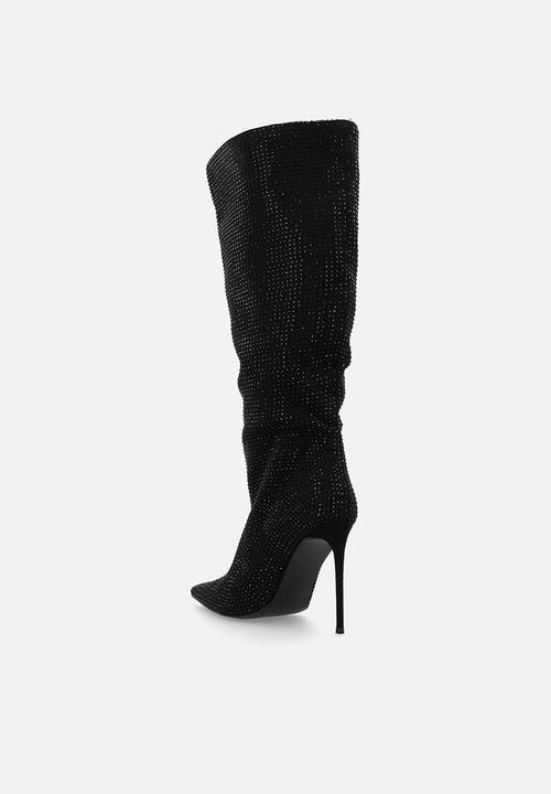 Lothario Black Diamante Knee High Boots
