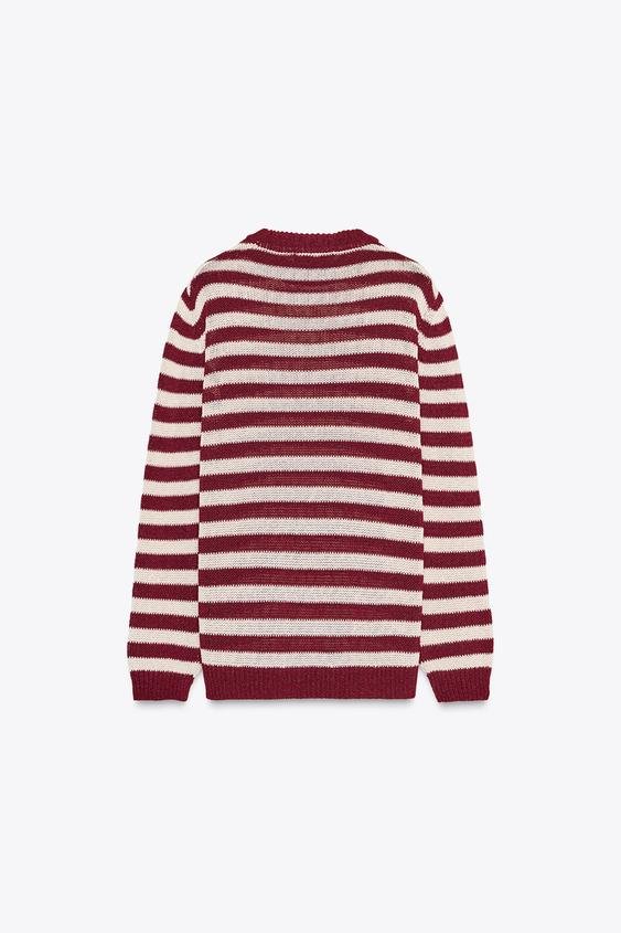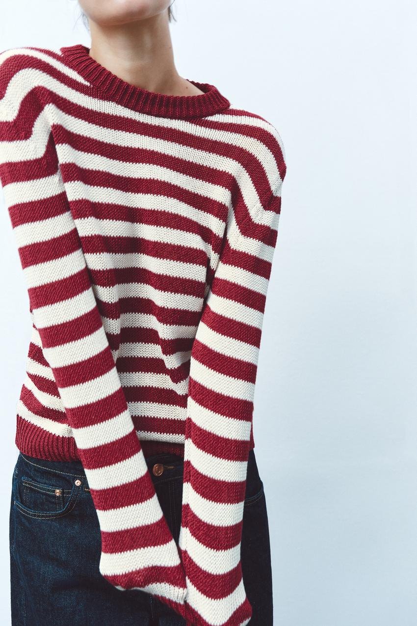 ZARA Red,White Cotton Rustic Knit Ladies’ Sweater
