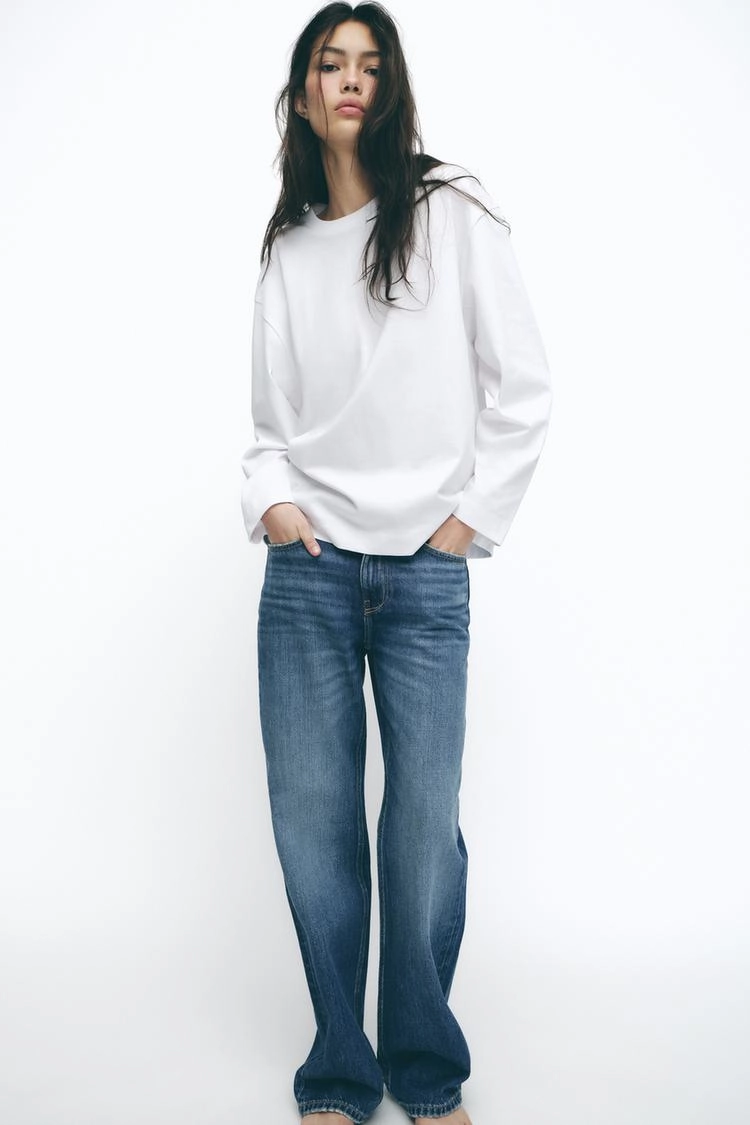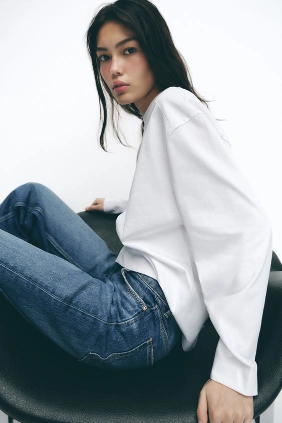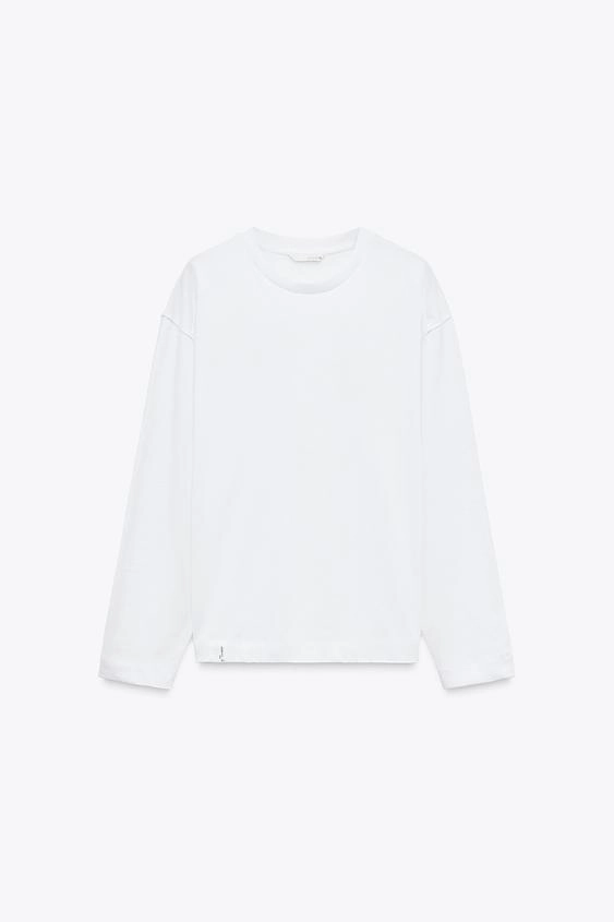 The Zara Long Sleeve Label T-Shirt is a versatile and comfortable addition to any wardrobe, offering a minimalist design with subtle detailing.