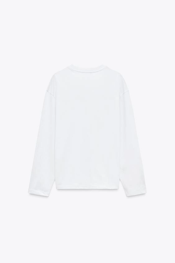 Zara White Ladies’ Long Sleeve Label T-Shirt