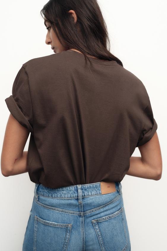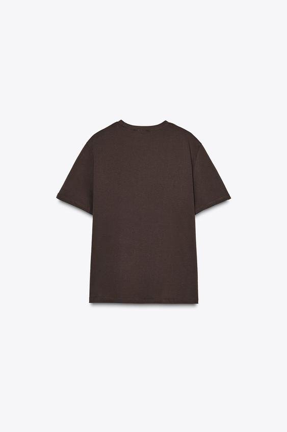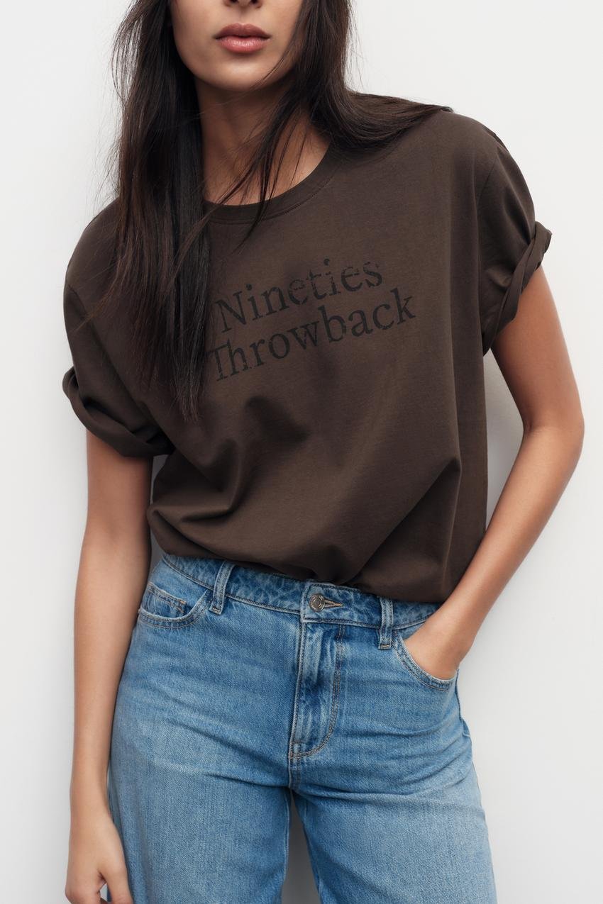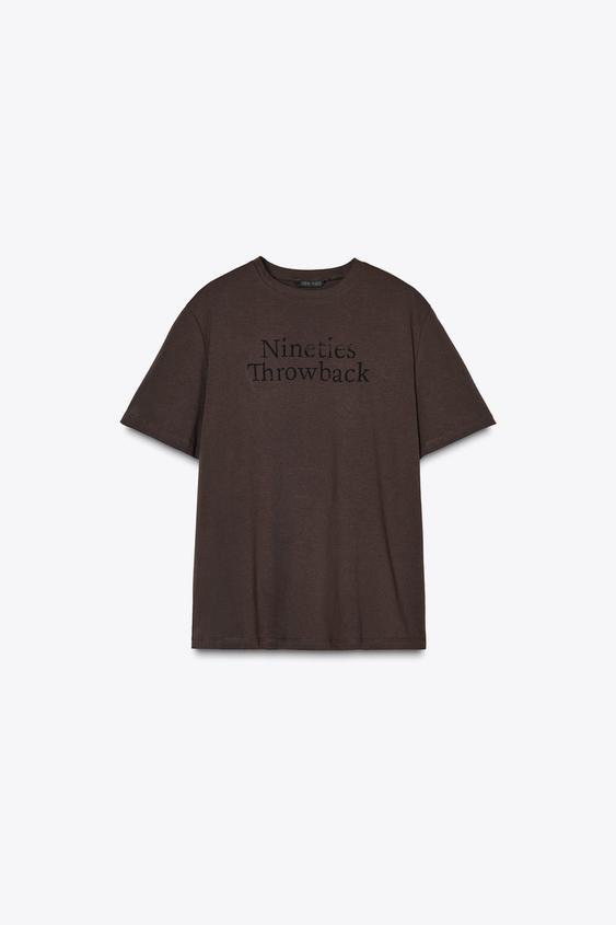 Zara’s Brown Ladies’ Washed Text T-Shirt
