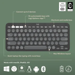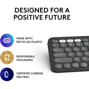 - Sustainable Materials: Constructed with certified post-consumer recycled plastic, the Pebble Keys 2 K380s reflects Logitech’s commitment to environmental responsibility.