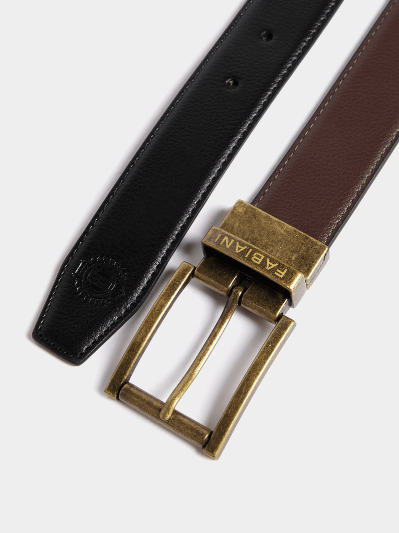 Fabiani Men’s Black/Brown Reversible Leather Belt – Stylish & Versatile
