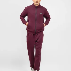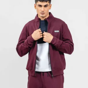 Brumano Burgundy Tracksuit Jacket With Mock Neck – Stylish Comfort for Everyday Wear